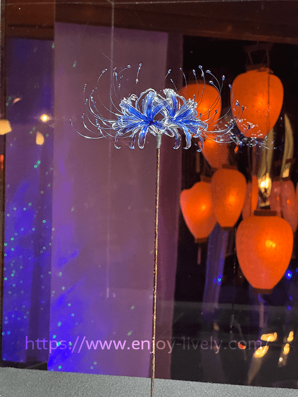 かんざし作家 榮 -SAKAE-さんの作品。青色の彼岸花。すんごい繊細、めっちゃ綺麗。