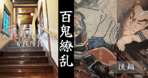 これで、全部屋を制覇しました。頂上の間から下りていく道中でまた各部屋を覗いて、心置きなく作品を鑑賞しました。(特に酒呑童子と菅原道真)