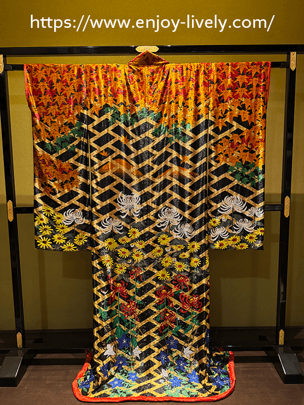 印象に残ったのはビーズで作られた着物。ビーズアーティストの金谷美帆さんの作品「秋来」です。