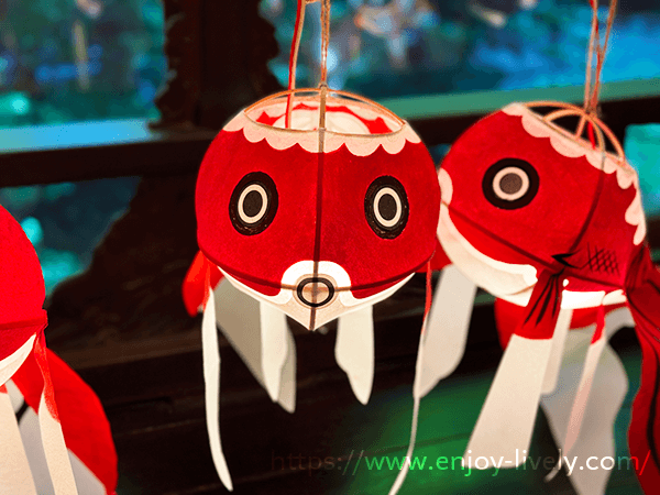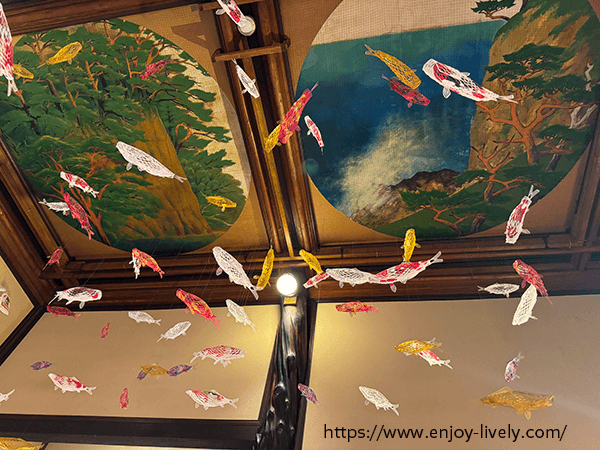 紙製の錦鯉が風でゆらゆらと動いていて、まるで空中を泳いでいるみたいでした。