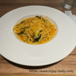 パスタセットのパスタは10種類くらいから選べて、わたしは「魚介のラグー ビスク風海老出汁の生スパゲッティ」にしました。魚介系ってめったに選ばないけど、せっかくなので(?)オーダーしました。おいしかったです!