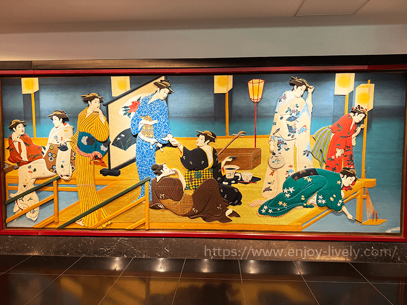 ここにも彩色木彫板が。4枚目、5枚目は花魁なのかな。