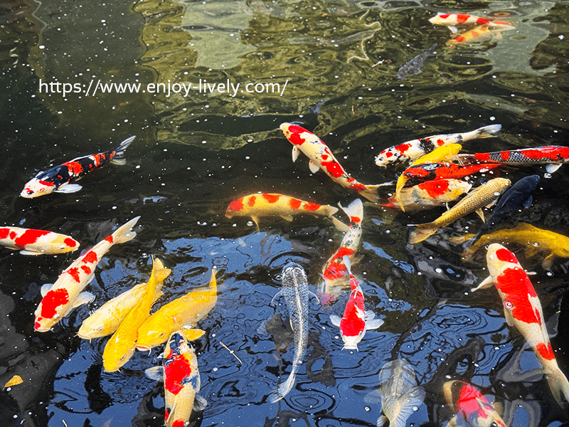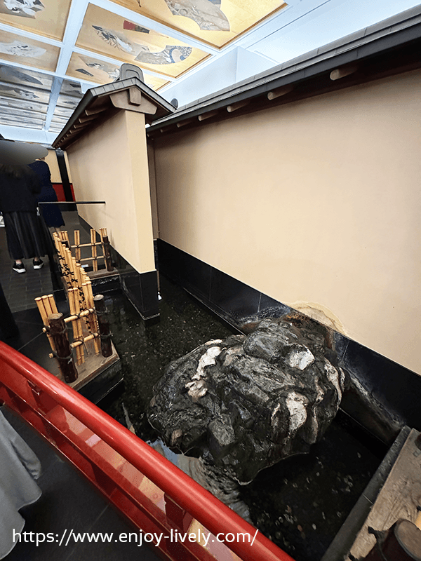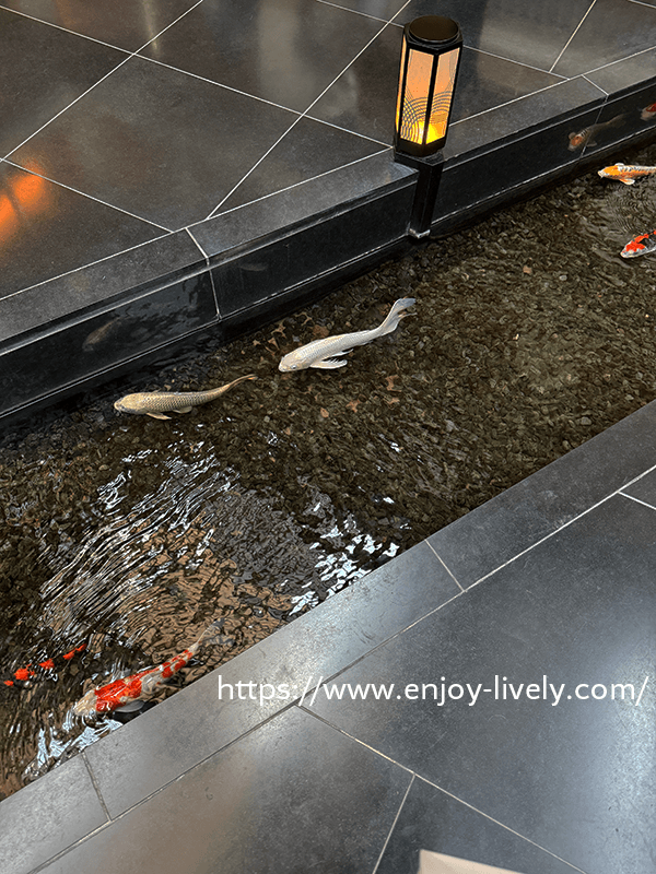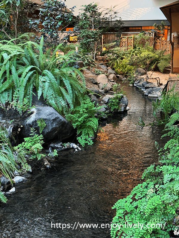 屋内なのに小川あるし。鯉までいるし。柵とかないから、うっかりしたら落ちちゃいそう。足元注意。